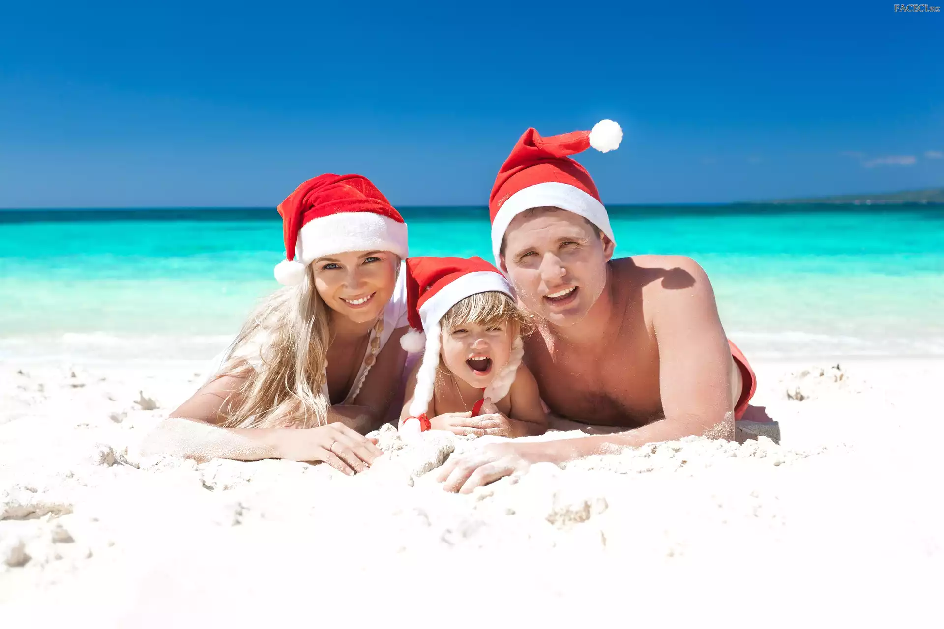 Dziecko, Kobieta, Mikołaja, Czapki, Mężczyzna, Plaża - faceci.biz